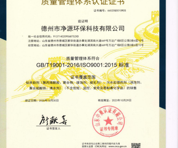 我司取得質(zhì)量管理體系認(rèn)證證書
